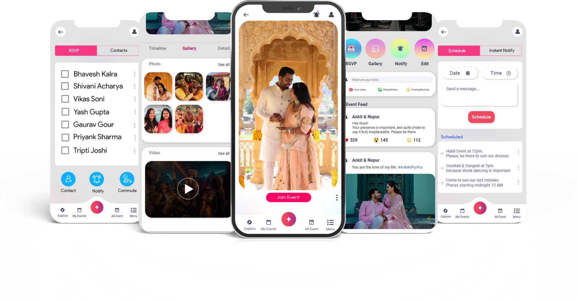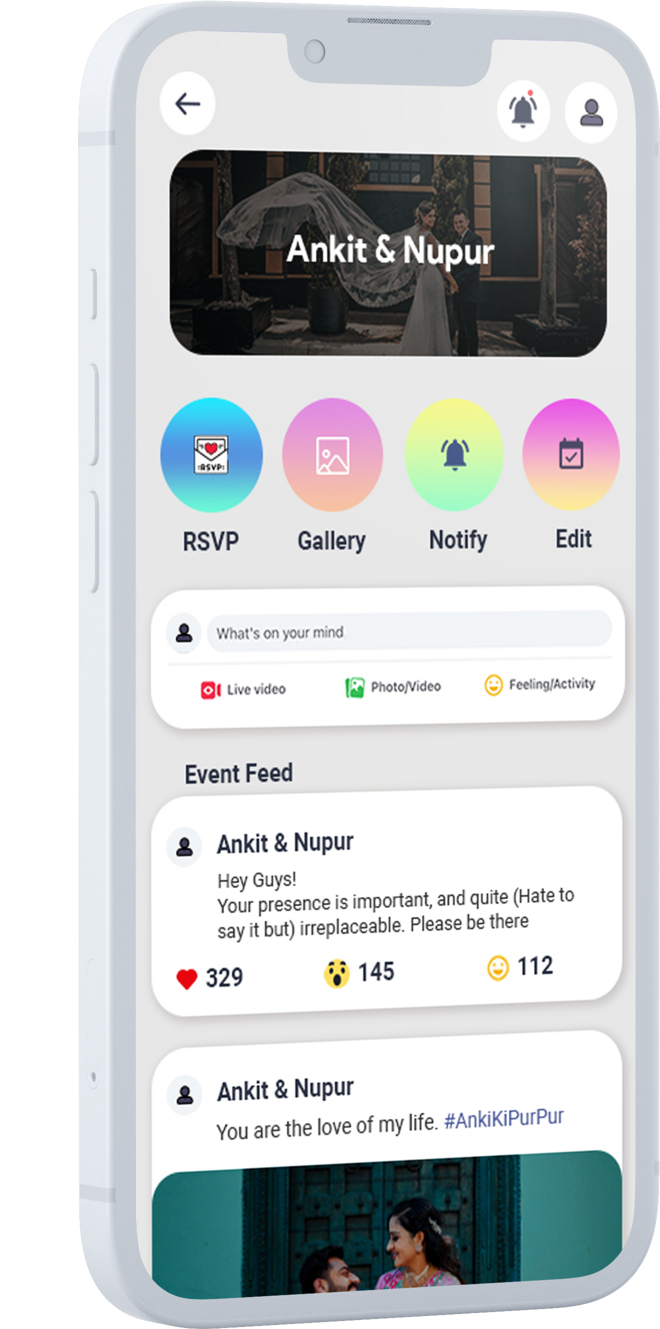 Pick the best date with the date poll, and even share the timeline. Keep the gaga going on via announcements and live feed. Share the entire event on the application so that your guests can engage and send reactions.